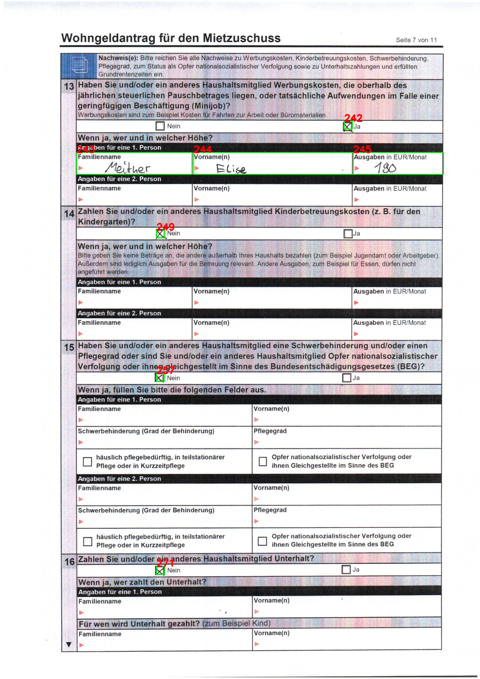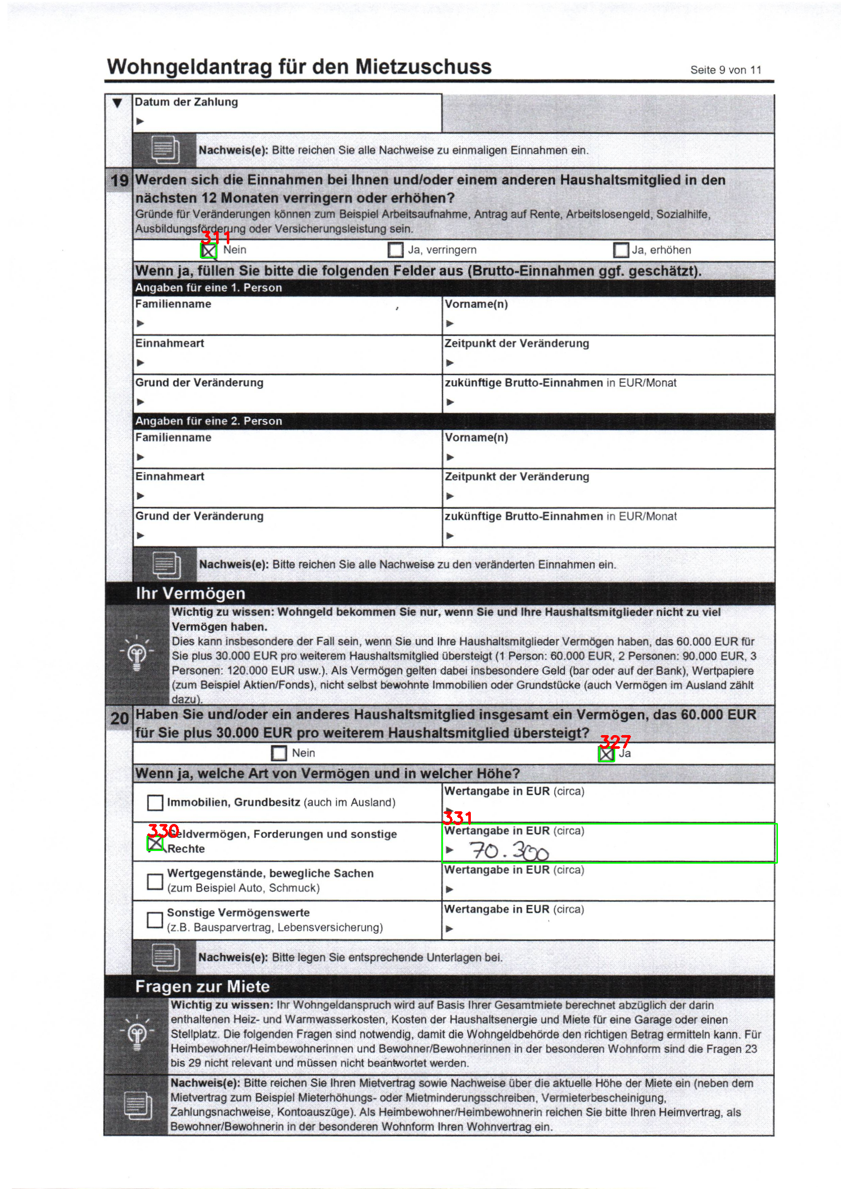 | Typ | Formularangabe | Nachweisdokument | Vergleich |